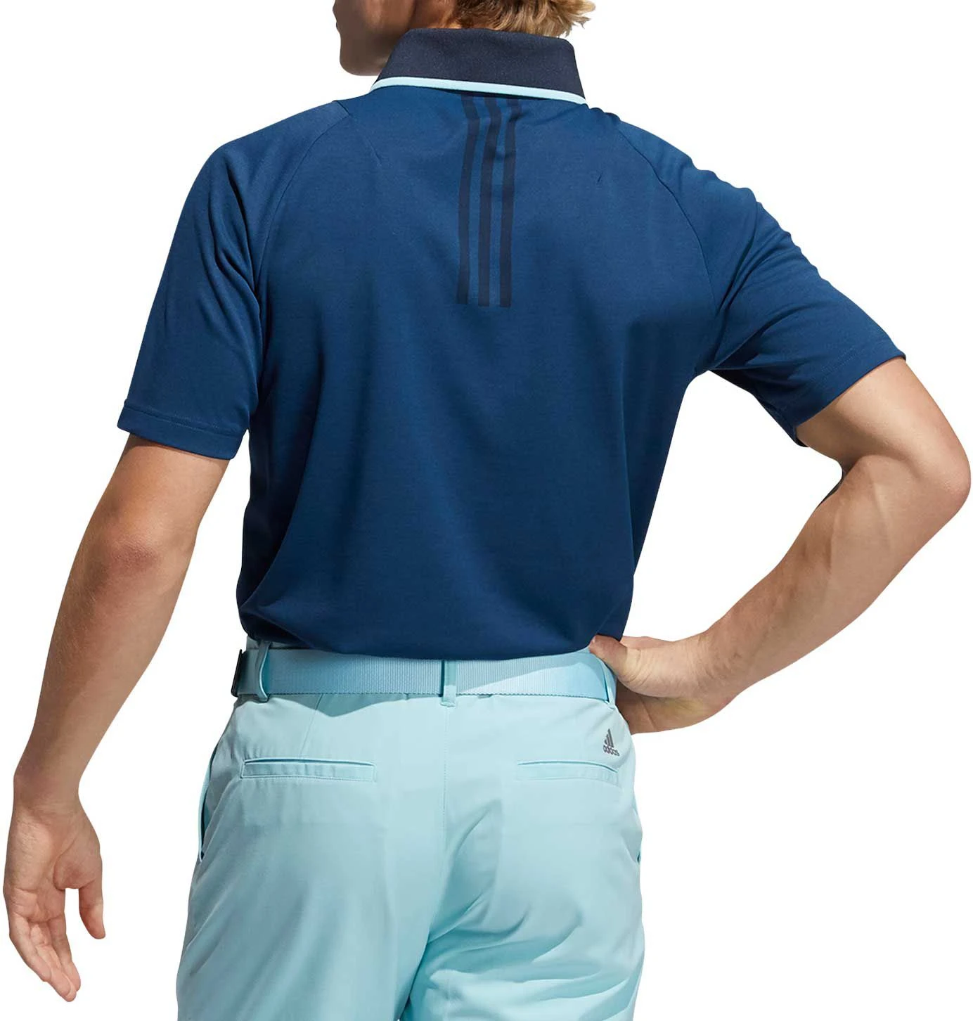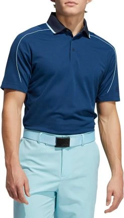 - Three-button ribbed polo collar
